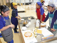 自家製のかわいいかぼちゃを持ってきて、調理しました。その他、給食にいも団子をだしたり、みんなにくずもちを配ったり、手際の良い作業が目立ちました。